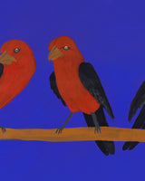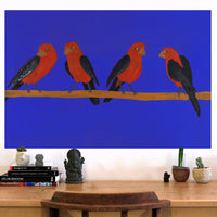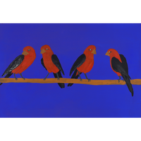 This is a painting of tjulpiu (birds) native to the Kalka and Pipalyatjara communities of South Australia. They are a part of every day life, but also play their part in some dreaming stories.