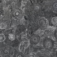 “My dreaming, My Grandmother, Mother and Aunty at Willowra, they taught me to paint my dreaming.” Lola Nampijinpa Brown was born in Ti-Tree, NT, a small community 193 kms north of Alice Springs. When she was a little girl her mother and father took her to Willowra where she grew up. She went to school there and then to Alice Springs where she attended high school before moving to Mount Allen where she married her promised husband. She was married for 25 years. While living in Mount Allen Lola was an active member of the Museum. She made music sticks and necklaces, and painted coolamons and beads. Lola has 7 children and 11 grandchildren. Her three sons still live in Mount Allen and her daughters live in Willowra, Tennant Creek and Mount Allen. She likes to visit her children whenever she can. In 1994 Lola returned to Willowra for a short time before returning in 1997 to Mount Allen to live with her children. At Mount Allen she began painting but as there is no longer a Museum and Art centre in Mount Allen, she was dependent on the availability of materials. In 2002 Lola moved to Yuendumu, a remote Aboriginal community 290 kms north-west of Alice Springs in the NT of Australia, to paint with Warlukurlangu Artists Aboriginal Corporation, an Aboriginal owned and governed art centre. It was here in Yuendumu that she also met and married her present husband, Christopher Japangardi Poulson, who also paints with Warlukurlangu Artists. Lola has been painting with Warlukurlangu Artists since 2002. Lola attends the Art Centre every week day where she paints her Water Dreaming stories, stories which relate directly to her land, its features and animals. These stories were passed down by her grandmother, mother and aunty and their parents before them for millennia.