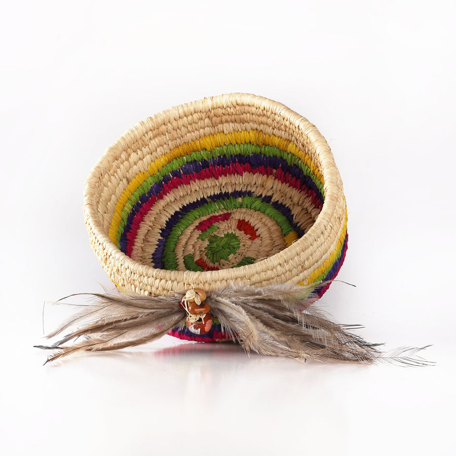 - Materials - Grass, raffia, wool, Emu feathers, and seeds