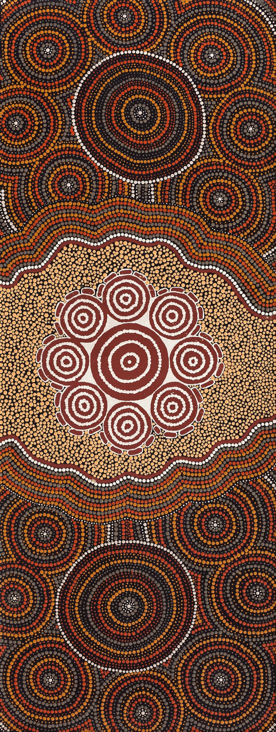 Mickaela Napangardi Lankin, Pamapardu Jukurrpa (Flying Ant Dreaming) - Warntungurru, 122x46cm