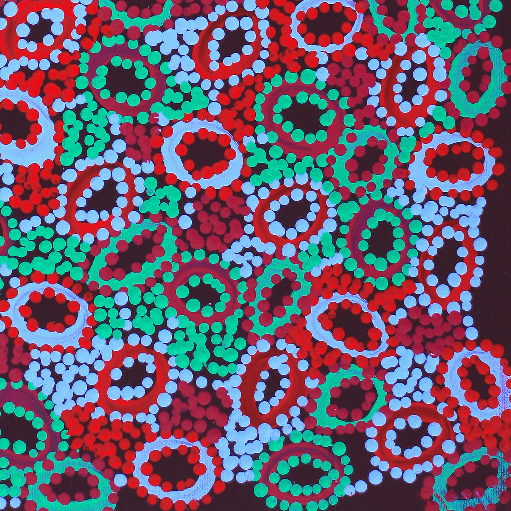 Aboriginal Artwork by Priscilla Nangala Robertson, Ngapa Jukurrpa (Water Dreaming) - Puyurru, 30x30cm