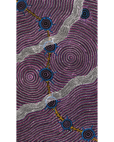 Shanna Napanangka Williams was born in 1988 in Alice Springs Hospital, the closest hospital to Yuendumu , a remote Aboriginal community located 290 km north-west of Alice Springs in the NT of Australia. Shanna is the great grand-daughter of Paddy Japaljarri Sims (Dec) and Bessie Nakamarra Sims (Dec), two of the founding artists of Warlukurlangu Artists Aboriginal Corporation, an Aboriginal owned and governed Art Centre located in Yuendumu. Shanna has been painting with Warlukurlangu Artists Aboriginal Corporation, since 2002, when she was 14 years of age. She began painting during the school holidays when the art centre ran cultural maintenance programs for the school children. Shanna paints her father’s Jukurrpa stories, Dreamings which relate directly to her land, its features and the plants and animals that inhabit it. These stories were passed down to her by her father and her great grandfather. Shanna uses an unrestricted palette, building on traditions that stretch back at least fifty millennia, developing a modern interpretation of her traditional culture. The Sims family is indicative of how community based the art centre is with 4 generations actively participating in art centre activities at the same time. Shanna attended the local Yuendumu School. She is now a full time mum looking after her two children Ivan and Diona. When she is not painting or looking after her children she likes to go hunting. She particularly likes hunting for Honey ants.